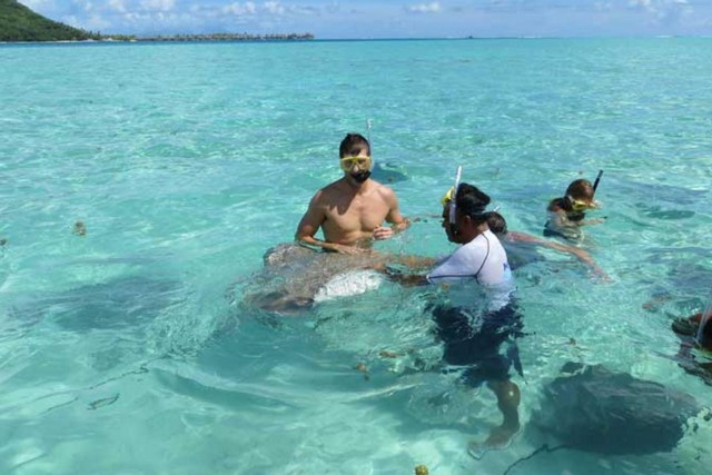 Кормление акул и скатов - необычное приключение для тех, кто не боится рискнуть и поплавать с ними в кристально чистых водах лагуны между пестрыми кораллами. Если же Вы не решитесь на это, то всегда можете покормить этих удивительных рыб с палубы лодки и понаблюдать за ними через стеклянное дно. |